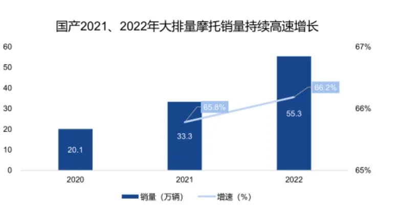 近年来,随着经济发展,生活水平的提高,我国居民消费理念不断转变,摩托车从传统代步工具转向休闲运动消费品,一些被称为Z世代(即出生在1995-2009年之间的人)的年轻人戴着智能头盔骑摩托车长途旅游成为他们快节奏城市生活缓解压力感受自然风光的一种玩乐方式。这些推动了摩托车和智能头盔需求崛起,“拉风”,“潮流”成为摩托车的标签话题。 据统计2021年到2022年我国摩托车销量持续高速增长,随着国家“一盔一带”政策的施行头盔的需求量也持续上升。
